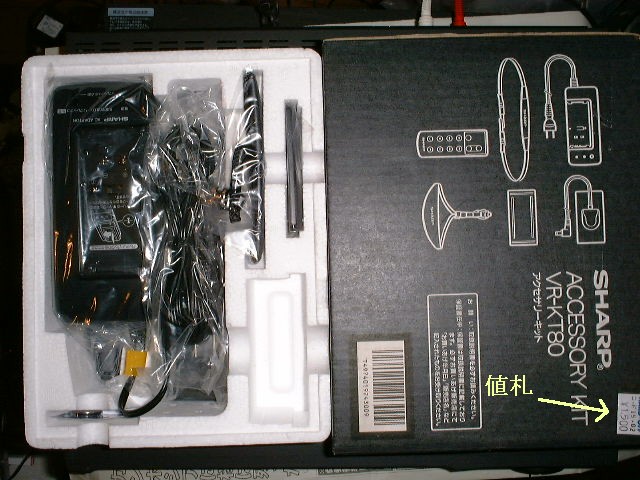 最近SHARPのビューカム用アクセサリが新品箱入りでゴロゴロしている。 ビューカムはSHARPらしく節操のない設計で、リチウムイオンバッテリーなんぞ5種類はあるのではないだろうか。 それら箱入りアクセサリの中で、貴重な8ミリビデオムービー用のキットを見つけた。 内容は下の写真のように、ACアダプタ、DCケーブル、バッテリーパック、ショルダーベルト、ハンドストラップ、ワイヤレスリモコン、リチウムボタン電池のセット。 ![]()