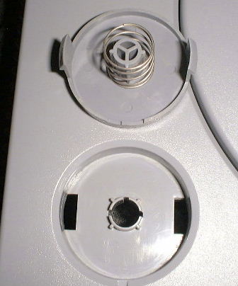 外れたところで、シュウドウ部をグリスアップ。 ついでだからOPENボタンも同様に整備する。 上からボタンを押すとボタン下部が斜めに切られており、90度異なる横方向へスチール製のプレートを擦って動かす機構になっている。 すっごい安い設計。 ここもほんの僅かグリスを塗布すると驚くほどスムースに動くようになった。 ![]()