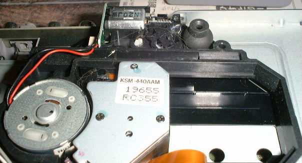 スイッチ部へ上から何か落とした形跡がある。 CD部はどうせオーバーホールするからすぐにバラすことにして省略。