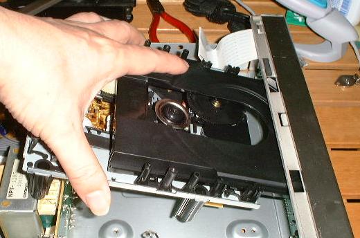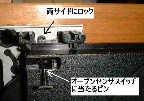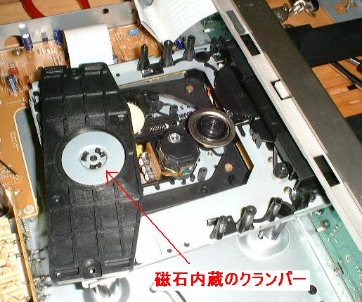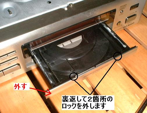 電源を入れて、トレイを引き出します。 CDをチャッキングするカバーを外します。(1番のプラスドライバーでネジ2本) ピックアップレンズとスライダー、シャフトを無水アルコールで清掃します。 スライダーとシャフトへ綿棒でシリコングリスを塗布します。 これで再生するようになりました。 なんだつまらん、ログを書くほどじゃないと3日くらい使っていました。 音は銅箔巻きのスチロール等を使い、かなり尖った印象です。 しかし音像がしっかりし、奥行きも感じます。 人気がある所以でしょう。 修理から3日目、そろそろ屋根裏にでも仕舞うかと考えていました。 古いCDをセットしてPLAYボタンを押したら、一度トレイを引き込みましたがすぐに出てしまいました。 あれっ? と思って再度押すと、今度はきちんと再生モードに入りました。 トップカバーを開けて、動作を見ます。 トレイが収納されたら、ピックアップユニットがせり上がりCDをチャッキングします。 そのとき瞬間ですが、せりあがる動作が鈍くなります。 トレイ駆動用のベルトが伸びてしまっているようです。 機構上、トレイの格納後ピックアップユニットがせり上がり、チャッキングの最後が最もトルクを必要とするようです。 ここ3日間どうしていたのか不思議に思いましたが、動作をよく見るとわかりました。 10数回に1回程度、ピックアップユニットは一瞬ですが止まってしまいます。 すると上側のCDクランパーに磁石が内蔵されているので、これがピックアップユニットを引き上げていました。 本来ならモーターのトルクで完全にせり上がるところが、滑って止まり磁石に助けられていたのです。 ![]() ![]() トレイ先端の化粧カバーを外します ![]() ネジを4本外し、トレイを少し出したままメカユニットを取り外します ![]() センサースイッチのピンや2箇所のロックを外しトレイを引き抜きます ![]() 200円のベルトを交換して、今度こそは修理完了です |