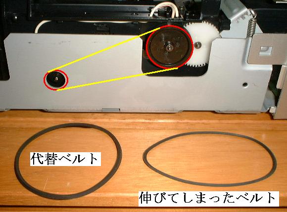 プーリーの溝幅を見ると、ベルトが細いような気がします。 手持ちのベルトを調べてみると、シャープのビデオデッキ用でちょうどよい長さ、太さのものがありました。 早速交換します。 ![]()