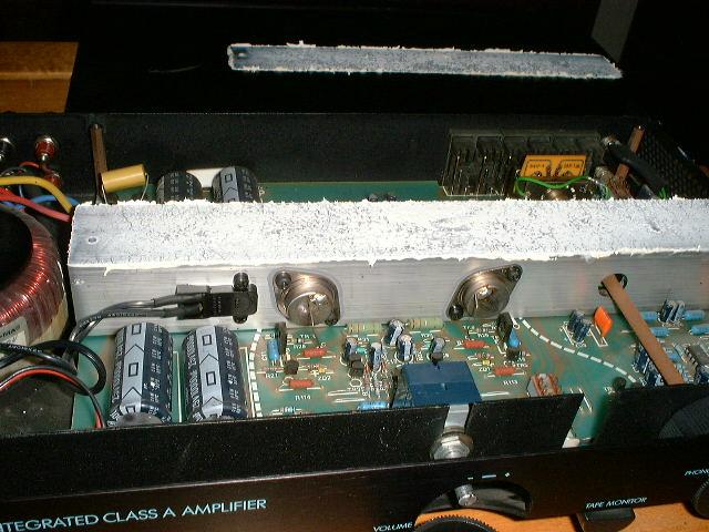 とりあえず、電源を入れて暖めます。 A級ですからその熱はかなりのものです。 3分でグリスが軟らかくなって外れました。 ![]()
