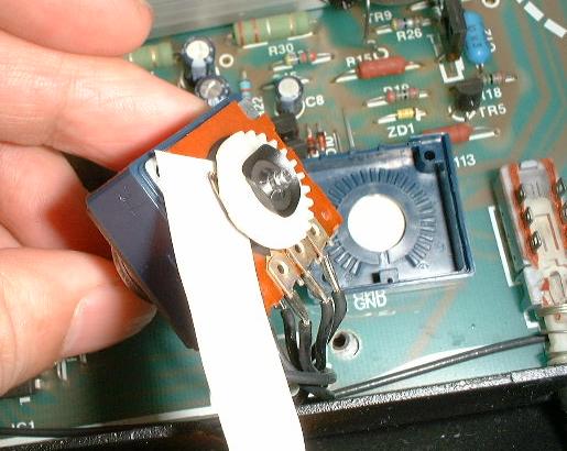 ローレットがツマミ側にしかありません。 何か変ですね。 VRを外して見ると、ALPUS製でした。 本体はイギリス製ですが、故障で交換したのでしょうか。 VRの足から基板までは、なんとリード線で接続されていました。 普通だったら、「なんだぁ、修理交換品じゃん」と思うところですがA1の修理記事を検索してみると他のサイトの写真でも同型のVRが使用されていました。 うーみゅ? ![]()